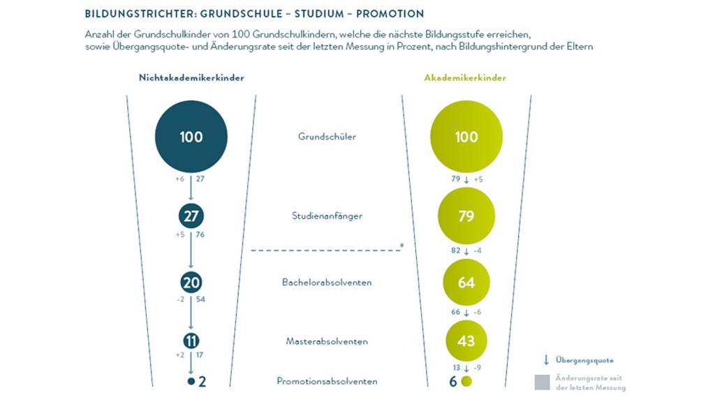 In Germany, my home country, the academic experience of students’ parents is still the number one determining factor if their child will have a successful higher education journey (or not). Not even speaking of them successfully graduating, they already enroll in far lesser numbers. Of 100 children that have at least one academic parent, 79 enroll in bachelor programs. 43 of them will later on finish their master degree. Of 100 children without academic parents, only 27 start studying. Of those, barely 11 will become master graduates. The differences are dramatic, without a doubt.